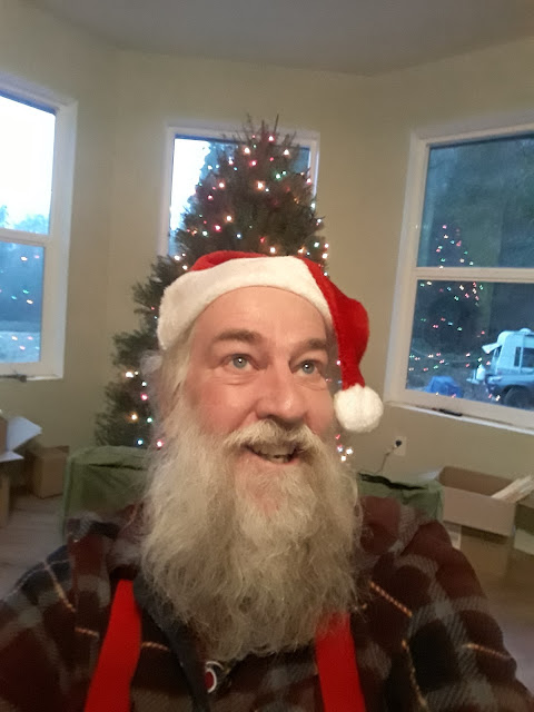 I've got the Santa vibe going, more by happenstance than by a purposeful channeling of the inner Jolly Old Elf. Since I've been otherwise engaged and have not seen fit to get out and get my hair cut for months, I have grown to look like a classic Santa if I don the conical red cap (otherwise, maybe I resemble the Norse god Odin). Some cynics may suggest I look more like the homeless drifters on the streets of Seattle. However, I do enjoy rocking the epic, natural and totally organic 'Santa beard'.